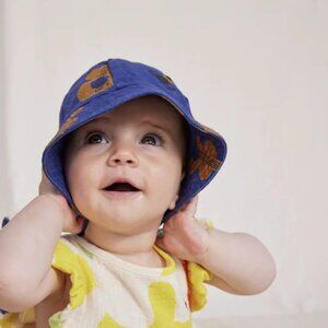An adorable bucket hat in blue designed with an all over guitar print from the premium European brand Bobo Choses. All new with tags. Size 12-24 months, 50cm.