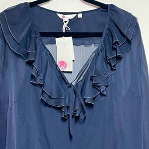 NWT Boden Navy Ruffled Lined Long Sleeve Top Blouse Womens Sz 16