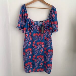 NWT Boohoo Floral Puff Sleeve Mini Dress