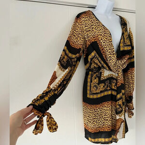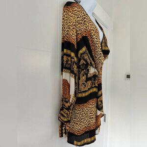 NWT Boohoo/ 🐆Stunning leopard chain ⛓️💥/ Woven twist/ MIDI dress/ Size US 10