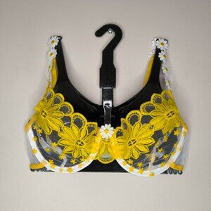 NWT Boutique Stunning Sexy Floral Embroidery Mesh Coquette Daisy Bra S Yellow