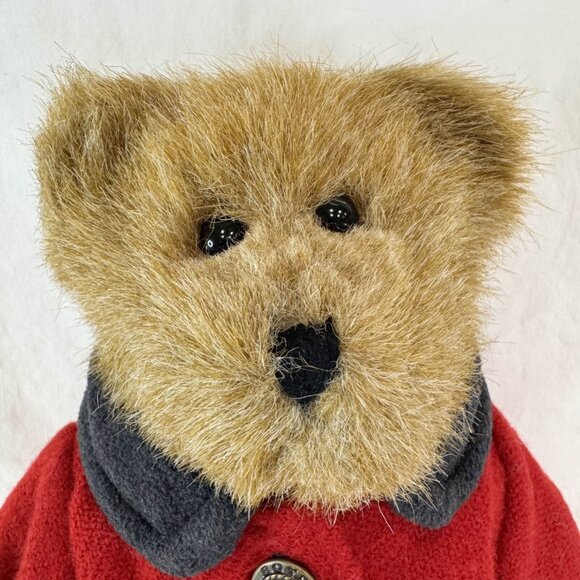 Edmund is wearing a houndstooth pants, a black t-shirt and a red fall jacket. All are removable. He is new with tags including the original price tag. He is 9 inches tall, fully jointed with darker brown felted paw pads. He is so soft. Retired now apparently he has been Bailey Bear's boyfriend since 1993.