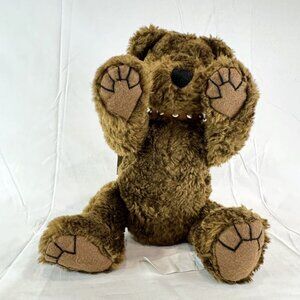 New with original tags and original price tag. 12 inches high. McKinley dark brown grizzly bear. Fully jointed, with black plastic eyes, a black embroidered nose and black embroidered paw details. He is sturdy full of a mix of pellets and foam. Retired in 1996.