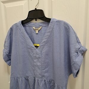 NWT Briggs New York Blue Linen Dress Small V-neck Short Sleeved