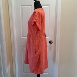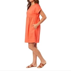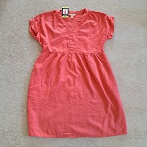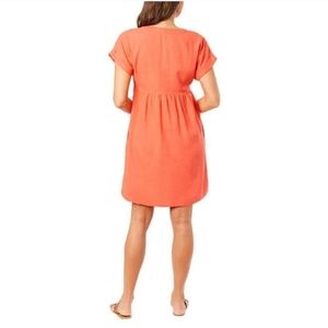 NWT Briggs New York Coral Linen Dress Small V-neck Short Sleeved