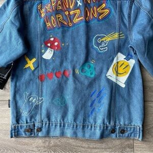NWT Brooklyn Cloth Streetwear Graffiti Denim Button Up Jean Jacket