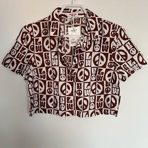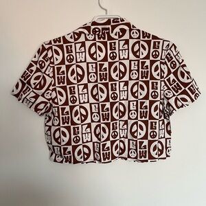 NWT Brown and White Graphic 70s PEACE Crop Top size small