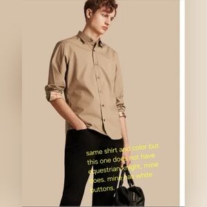 NWT Burberry Men's Cambridge Button Down Shirt Equestrian Knight Dark Honey XS