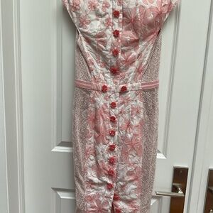 NWT Byron Lars Beguile Coral Lace Button Back Sheath Dress Size 2