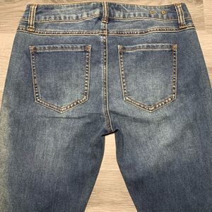 Great pair of medium wash skinny jeans from the brand Cabi. In perfect preworn condition. Still have tags, never been worn and have no flaws. A very comfortable, snug fit throughout. Have a great amount of stretch to them and give a very slimming silhouette. Lower rise- sit just above hips. Small patches of distressing just under both front pockets & just above the right knee. The wash is very cool-toned. Very versatile- could easily be worn casually or dressed up. Material is 84% Cotton & 14% Elasterell.