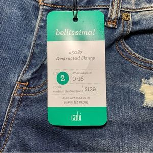 NWT CABI Medium Washed Destructed Skinny Jeans (Size 2)