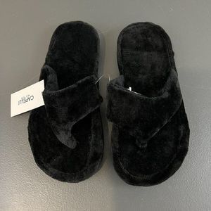 NWT CAPELLI Black Faux Fur Slip On Thong Slippers (S- 6/7)