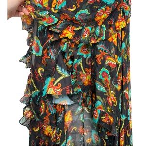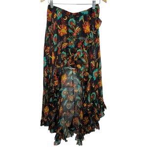 NWT CAROLINE CONSTAS Adelle Silk Asymmetric Floral Maxi Skirt Size Medium Black