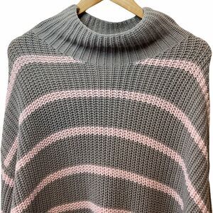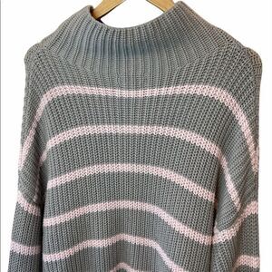 NWT CASLON Grey&Pink Striped Heavy Knit High Neck Wide Sleeve Loose Long Sweater