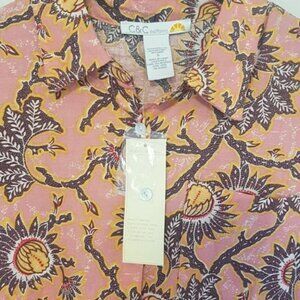 NWT C&C California floral print pink linen boxy button down shirt size S