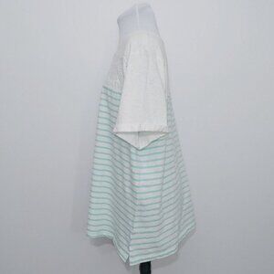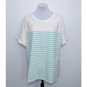 NWT CHARTER CLUB White and aqua colors, eyelet/embroidered, side slits, short cuffed sleeves, coastal, nautical, casual, summer top/t-shirt, size XXL. Nice light, soft and stretch fabric. Brand new with tags! Please don't hesitate to ask if you have any questions! Measurements:
