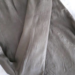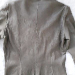 Beautiful butter soft lightweight leather jacket and/or top in gray taupe with knit (stretchy) sleeve insert - lined sleeves and upper back. Size 44 (approx L). Super comfortable!!