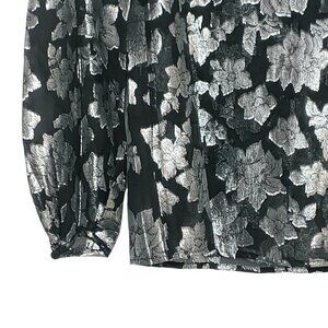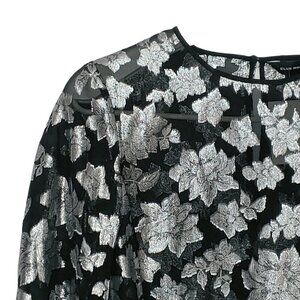 NWT CLUB MONACO Black silk silver floral embroidery sheer blouse