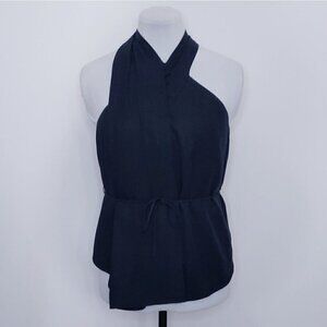 NWT CLUB MONACO Black, cross over, draped front panel, back zipper, belted top, size 0. All lined, nice light and soft fabric, no stretch to it.