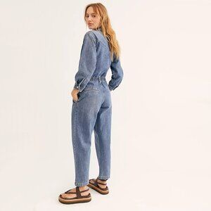 NWT Citizens of Humanity Mae Pleat Yoke medium wash blue denim jean jumpsuit