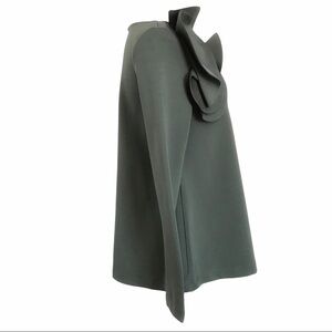 NWT COS MUTED GREEN LONG SLEEVE FLORAL APPLIQUÉ BOAT NECK TOP, straightlined solid muted green long sleeve top with an oversized floral appliqué on the right shoulder - boat neck. Minimalist with a twist, between casual and semi-formal / dressed. Perfect business top. Bold yet conservative. A mix of style - interesting design.