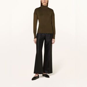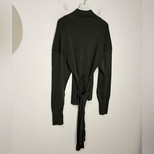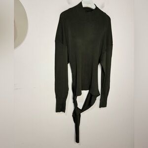 Offered in an earthy khaki hue, this rib-knitted top from the COS womenswear collection is designed with a high neckline and panelled, rounded sleeves. It turns to reveal a subtle cutout at the back that's held in place with tonal ties.