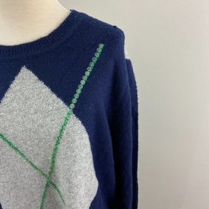 NWT COURT & ROWE Blue Argyle Crew Neck Sweater (XL