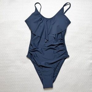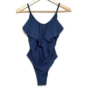 NWT CUPSHE Scoop Neck Ruffled One-Piece Swimsuit in Midnight Blue Women's Size S