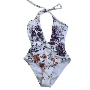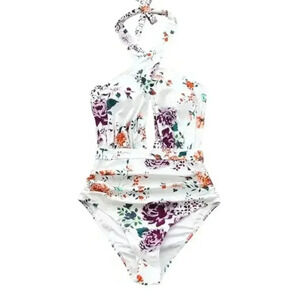 New with Tags NWT CUPSHE Women's Floral Rose Garden Cross Ruched Wrap One-Piece Swimsuit