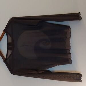 NWT Cakeworthy X Disney Nightmare Before Christmas Sheer Lettuce Hem Long Sleeve Top Size Large. Mesh.