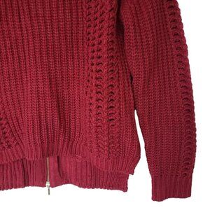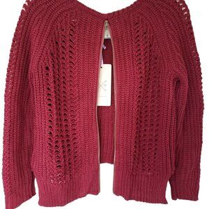 NWT California Moonrise Dark Red Chunky Crochet Knit Sweater Back Zip