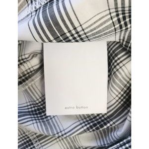 New with tags/never worn Calvin Klein unlined black & white plaid long sleeve collared button-up shirtdress with concealed front buttons, decorative embossed goldtone button at neck & on sleeve cuffs, and tie-waist in a Cotton/Polyester blend. Machine wash cold/Tumble dry low. A very lovely classic dress! Size 10. Approximate laid flat measurements: