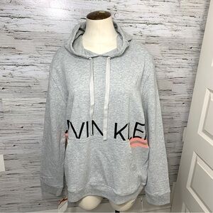 NWT Calvin Klein Gray Cozy Sweater Soft Sleepwear Lounge Hooded Slouchy Shirt M