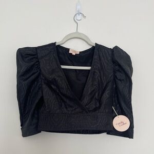 NWT Camila Coelho Micaela Black Crop Top Sz CS sexy feminine statement sleeve