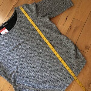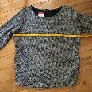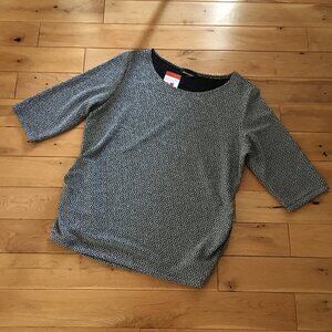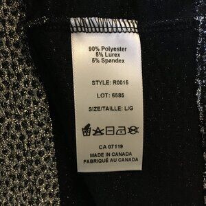 Excellent unworn condition, new with tags, half sleeve, ruched at either side, silver and black sparkle top by Canadian based company Initiatives. Perfect for a rock concert or performance. Made for the spotlight.