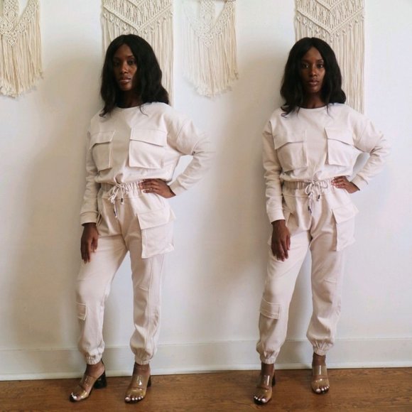 (NWT) Cargo Jogger Two-Piece Set - Cream