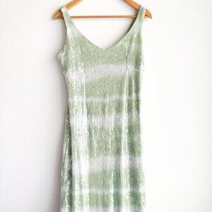 NWT Caroline Constas Dress Midi Slip in Mint Green Ombre Sequins S.