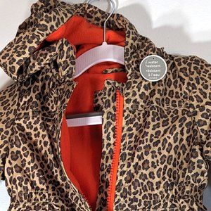 NWT Carter's Toddler Baby Girls Rain Slicker Jacket Brown/Orange Leopard Raincoat Fleece-Lined 12M