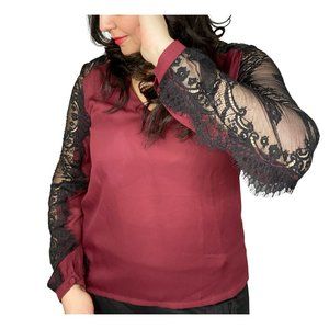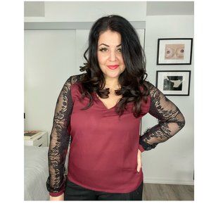 Jovonna London lace top. Lace on top of sleeves. Pair it with high waisted jeans, pants or a skirt, and transition from day to night easily.
