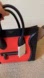 Authentic NWT Celine Céline Paris Mini Luggage Tri Colour Color Bright Orange Salmon Red Black and Taupe Leather Travel Luggage Tote Handbag Bag
