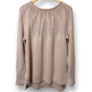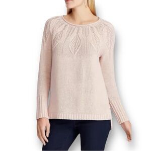 NWT Chaps Pointelle Yoke Sweater Leaf Stitch Blush Pink with Gold Threds L