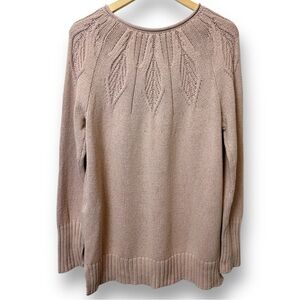 NWT Chaps Pointelle Yoke Sweater Leaf Stitch Blush Pink with Gold Threds L
