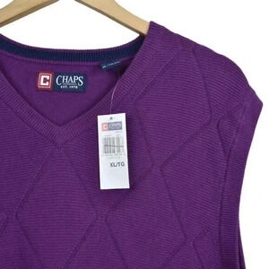 NWT Chaps Sweater Vest Purple Argyle Knit Golf Preppy