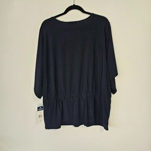 NWT Navy Blue Chaps size XL Short wide sleeve, v neck top in Navy Blue