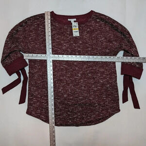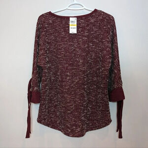 NWT Charter Club Womens M Carriage Red Textured 3/4 Bow Tie Sleeve Top Shirt