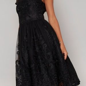 This beautiful lace, tulle black cocktail dress from ChiChi London is New With Tags and has never been worn. It is in brand new, perfect condition. It's such a fun, girly dress! It fits true to size and would be a beautiful dress for prom, cocktail parties, a wedding, a gala, etc. The size is US 4 / UK 8.