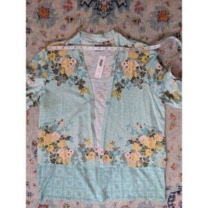 NWT Chico's Medallion Galore Blue Floral Open-Front Knit Jacket - Size 2 (L/12)