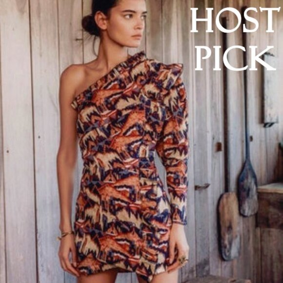 NWT Chufy one sleeve geometric & metallic accents mini dress