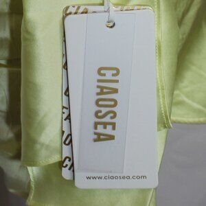 NWT Ciao Sea Draped 100% Silk , lining 100% polyester formal party Skirt mini yellow zipper side size Large (European) feet medium and small;