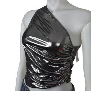 NWT Cider Silver Metallic One-Shoulder Crop Top Size Large